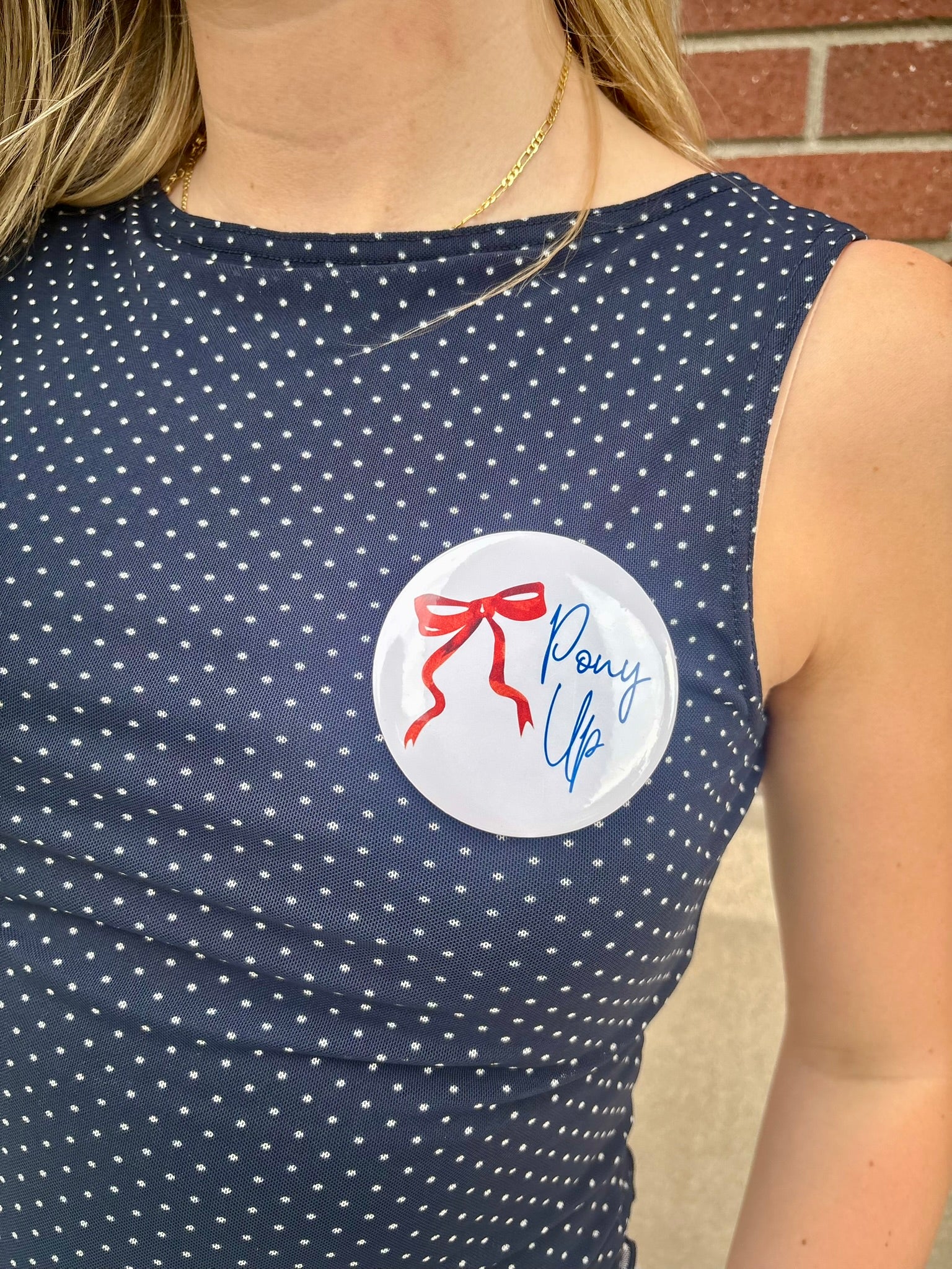 Bow "Pony Up" pinback button!