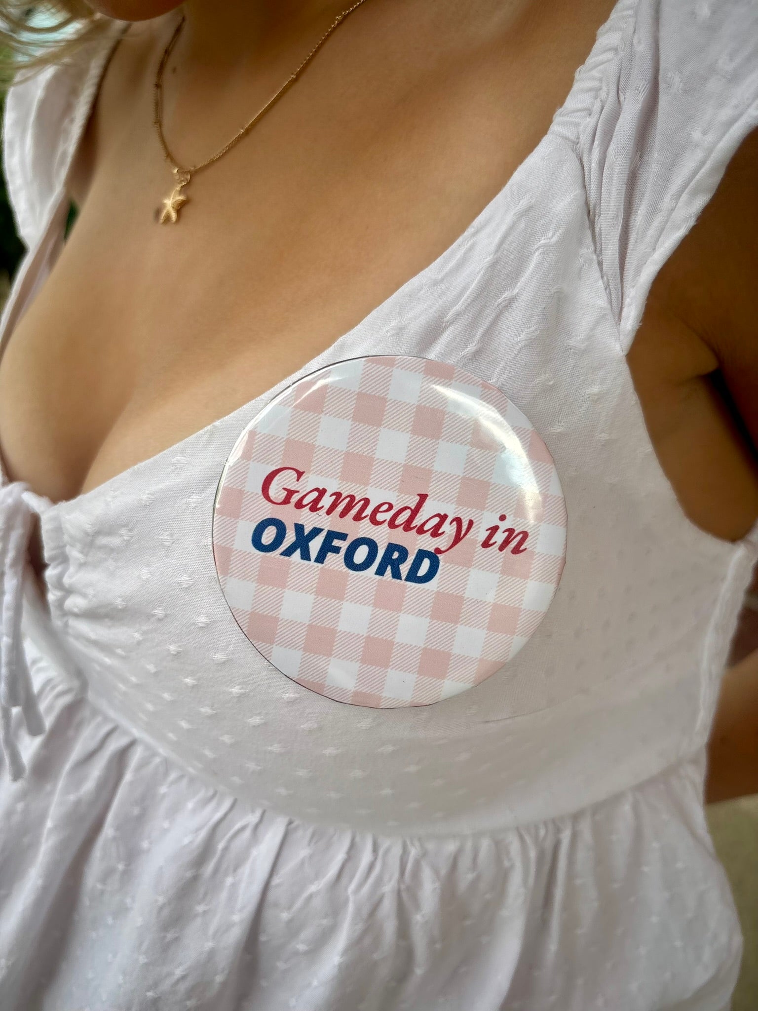 Gingham "Gameday In Oxford" pinback button!